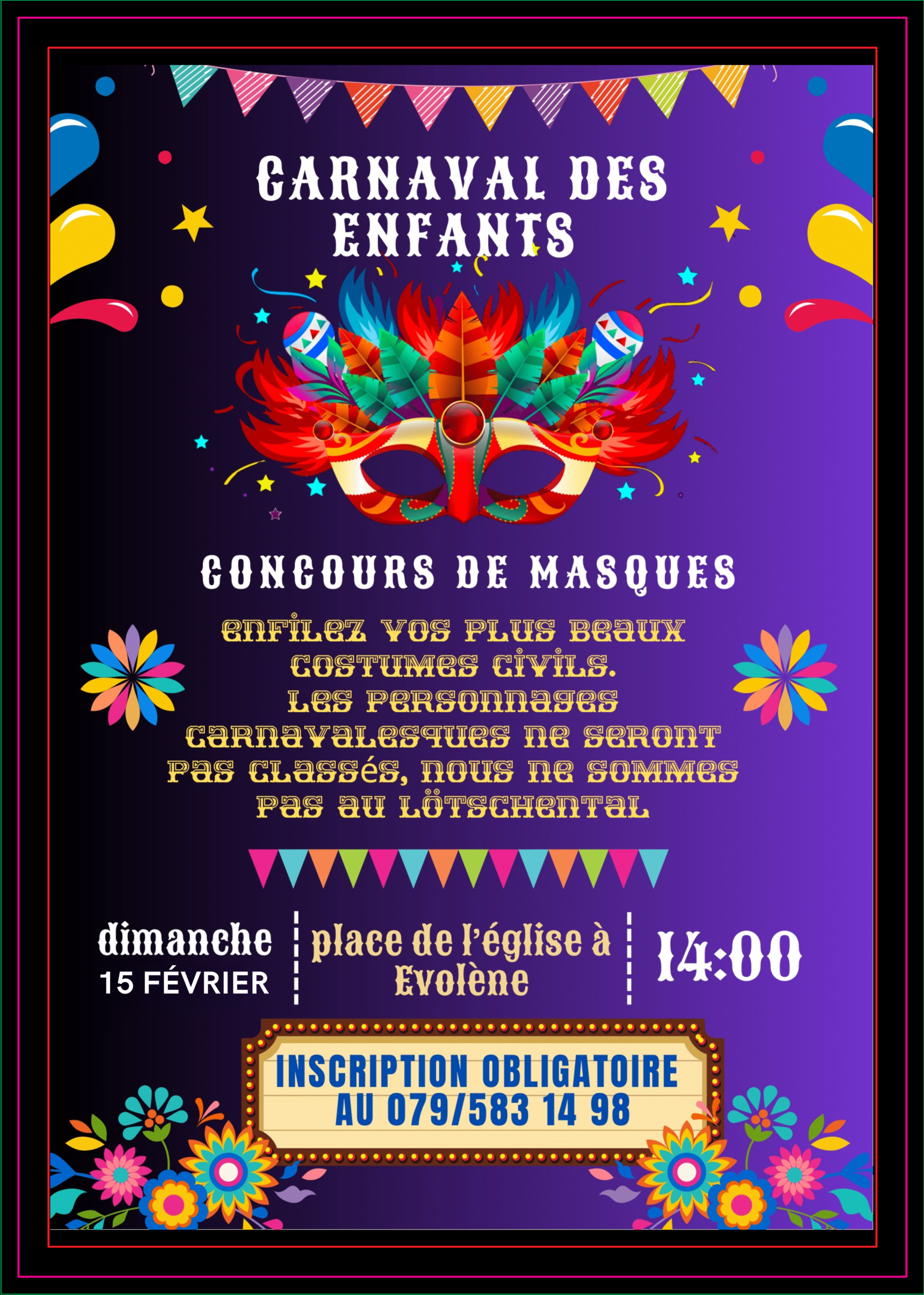 Sur les pistes de ski de Chemeuille, la journée : course à ski déguisé « Ski’arnaval », infos et inscriptions ici :  https://carnaval-evolene.ch/course-skiarnaval2026/